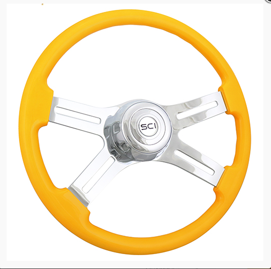 The 3 Hole Steering Wheel Classic Yellow is a must-have for any semi truck. Its 18" painted wood rim and chrome accents add a touch of style to your vehicle. With its three holes, you can easily control your truck with precision and ease. Upgrade your driving experience today.