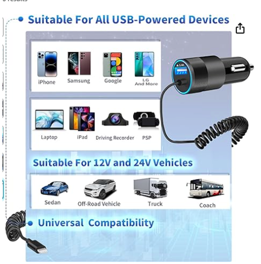 Iphone Fast Car Charger with Power Charger Adapter - X003SKUQ8L